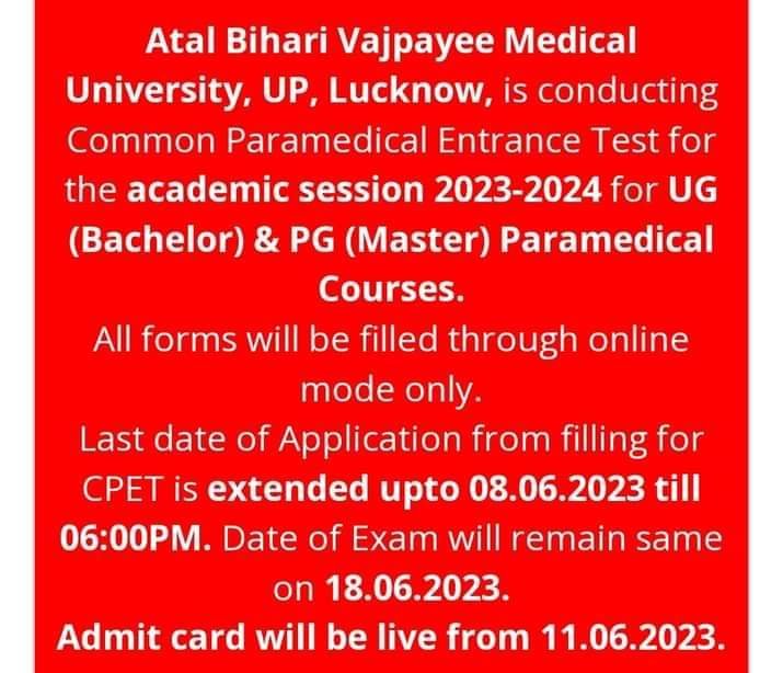 Notice - Common Paramedical Entrance Test (CPET) 2023-24  |